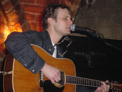 My regular readers here know that I have a weakness for unusual voices, especially the right whiskey-soaked "growl"... As long as it's not just a Tom Waits imitation, there's only one Mr. Waits after all. Alastair Moock, singer-songwriter from Boston and younger than the sound of his cracked voice, definitely does his own thing. He started performing in 1995, when he moved from the New York suburbs to Boston, a haven for folk singers. "It seems no young musicians want to be labeled "folk" anymore. Everyone's passing through on their way to somewhere else -- alt.rock, alt.pop, alt.country. Alastair Moock plays folk music. Old school, powerful, intimate folk music. There was a time in America when folk music was relevant, edgy, even dangerous -- a tool of personal and political expression, at once raw and beautiful. That spirit lives on in the music of Alastair Moock", his bio states. After playing innumerable open mics, gigs at local coffeehouses and on the clubcircuit, he went touring in 1997, eventually ending up in Norway (2003) and cities like London, Glasgow, Paris and Amsterdam in 2006. "Sometimes he performs with a band or accompanist, most likely you'll find him alone on a stage, sitting in a low chair, stomping a booted foot, picking his beaten guitar and growling out beautifully crafted songs." He won a number of songwriting contests at folk festivals and of course he made records, three independent releases and then "Let It Go" landed in our Alt.Country Cooking hands! Alastair says: "The title was, first and foremost, a reminder to myself to make the album I wanted to make, not the one I felt I should make." That means the music is still folk mixed with countryblues, but the arrangements shifted to "stripped-down electric roots-rock", thanks to producer Michael Dinallo (founder and former guitarist for The Radio Kings) and the musicians: his fellow Mercy Brothers (bassist Paul Kochanski and drummer Andy Plaisted)! Kevin Barry plays electric and lap steel guitars plus the mandola, Alastair himself has his acoustic guitar of course. Except for a handful overdubbed parts -guitar and the guesting musicians- the album was recorded live in the studio. Another studio than planned... "On the morning of the day we were supposed to start recording, I got a call from drummer Andy Plaisted. He had just arrived at the studio in Boston to start setting up. What he found was a blackened building, debris all over the street, and a notice to contact the fire department. The engineer and owner of the studio arrived a few minutes later... Someone had evidently thrown a cigarette in a trash can the night before and, after everyone went home, the studio caught fire. The fire department came in the middle of the night and pumped hundreds of gallons of water in through the windows. Needless to say, we needed to find a new place to record." Most of the songs were written in 2002 / 2003, the years Moock and his blue-eyed Jane spent in Iowa City. His wife was enrolled in the University of Iowa Writers Workshop, but he claims: "I think the move affected my own writing as much as hers." The album starts off -very appropriate- with catchy beat-driven uptempo "My Famous Leaving Song". "They'll hear a clap of thunder and see a flash of light / I'm gone." Mark Erelli on harmonica. "When you're on that platform, you've never been so sure / You're leaving when you hear that whistle blow." "Standing At Five Corners" is a song about lost love ("You have your chance and then your chance is gone.") with yet another cool title and with Kris Delmhorst on backing vocals: "I've been out there waiting all my lifetime / The more I wait the more you never call." "Everybody's Wondering", a modern-day version of old-time gospel folk with essential dobro accents by Tim Kelly: "Everybody's wondering how it's gonna be / Honey, when they're called back home" and "Death Don't Have No Mercy", an authentic sounding old blues with great electric guitar solos and cool drumming on the outro, written by Rev. Gary Davis, both address one of Moock's most favorite themes. "Death just never fails to fascinate me. Endings are a critical part of any relationship. I feel the same way about life." Another important theme for Alastair is depression, although the word is never mentioned in "Unwanted Guest": "I like to play the host but I'm done, unholy ghost / No more of you, unwanted guest." Very impressive song, this observation is great too: "The moon is just the sunshine that it holds" and luckily, this guest leaves in the last verse! "Red Ribbon Waltz", "Love Me True", and "Lovely Day" is a trio of love songs. I have to say that I would've put some tracks in another order... Anyway, the slow waltz features Kris Delmhorst again and Alastair tells: "There is something particularly Midwestern about it that will always remind me of our time there. Maybe it's the formality of asking someone to dance or the fact that the girl wears a ribbon in her hair... Anyone with a ribbon in their hair in Boston can count on a beating before the sun sets." "Love Me True", rhythmic & upbeat, backing vocals now done by Mark Erelli, asks: "Our senses of direction / Are in need of some correction / But baby, wil you love me true?" In slow "Lovely Day", with acoustic bass, lapsteel and mandolin, the lovebirds acquired "two kids who look like you and me"; but there's also the outside world, to be addressed in the raucous title track "Let It Go". After Moses and Darwin they come along: "Saddam Hussein took potshots / At the presidential dad / Now the presidential son / Want to drop bombs on Baghdad / That'd be fine if you could drop a bomb / On just a single head / But there's kids down there, you know / Man, you should've let it go." "When The Moon Comes Out Tonight" is my favorite on the album, just a simple & optimistic little song, showcasing Moock's raggedy voice over a lovely lapsteel arrangement. "It could be just illusion / The lure of fractured light / But