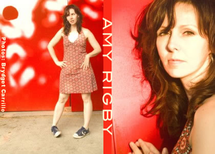 May 2003 (by E-mail) www.amyrigby.com Introduction December 1998, it was darned cold in San Francisco and my friend Russ Tolman took me to see his hero John Wesley Harding at the posh Great American Music Hall. He went to the bar and I went to see the opening acts: Chris Von Sneidern and then Amy Rigby with her band. She seemed rather nervous, the trip from L.A. had been "hairy" she said, with carwrecks along the highway. She struggled with a stubborn green Gibson and apologized for wearing the same outfit, grey mini-skirt and blazer, as last time. But she had guts in her approach of the not-so-interested audience. Starting off with a shy ballad, then pulling JWH on stage for a duet, he didn't even have time to shed his coat! Halfway through her drummer's song (yes, she's the ex of Will Rigby from the DB's), she surprised everybody with a ton of hilarious drummer's jokes, she was just great! Almost two years later I saw her again in Berkeley and it struck me how much she still had "grown", especially in confidence and what a unique, funny songwriter she is. Now she has her fourth solo-album out, "Til The Wheels Fall Off" on Signature Sounds Recordings and it's time the European continent gets to know Amy Rigby a little better! --- Johanna: Amy, while we're doing this interview, you're about to release your new album "Til The Wheels Fall Off". Please, tell us something about it? Amy: It's an album recorded in various cities and scenarios, with songs about survival in romance and life in general. The mood alternates between exhaustion and optimism. I tried to capture some feeling of live performance, mixed in with pop arrangements. I worked with an amazingly talented, versatile cast of characters! --- J: This is your fourth album, there's also an anthology. Before you decided to go solo, were you singing in bands? Did you start playing music at an early age and when was your first own song "born"? A: I wrote songs, played guitar and sang in two bands: Last Roundup, an "urban hillbilly" band from the East Village of NYC and The Shams, a female vocal trio also based in the bohemian underbelly of Manhattan. I started in my 20's, my first song was born walking down St. Marks Place when a complete country song popped into my head ("Playing The Fool", which appeared on Last Roundup's Rounder release "Twister"). I went home, checked my record collection to make sure the song was in fact mine and took it in to the band to work up. --- J: On the sampler-CD for the Blue Highways Festival 2003, Laura Cantrall is singing your "Don't Break The Heart". Were more of your songs covered by other artists? Do you have a favorite, of whom you're hoping she (or he) will one day record one of your songs? A: Another song, "All I Want" was recently covered by the great Ronnie Spector, which is like a dream to me, because she has one of the most distinctive voices ever! John Flansburgh of They Might Be Giants covered "Don't Break The Heart" as well. I'd like to hear Trisha Yearwood cover one of my songs, Nick Lowe would be great too. A fine compliment to me is when I perform somewhere and someone comes up and says "my band covers one of your songs when we play". Maybe they're not famous and I won't make any money off of it, but it means the songs are fun to play and speak to other people and that's what matters most. --- J: You co-wrote with Duane Jarvis and Stacey Earle, Joy Lynn White was on one of your albums, you toured with Warren Zevon and Billy Bragg, just to mention a few names of artists we like here. You're working with so many cool people, how do you first make contact with them? A: I've been out there for a while now and have met a lot of people along the way. Part of it is also that I am an enthusiast, a real fan of other musicians and writers and try to always keep up with what's new, what other people are doing musically, and not limit myself to one circle or type of music. Just quality. And even trash speaks to me. Also I think I've been very fortunate to be at least in the vicinity of the right place at the right time occasionally. --- |