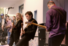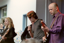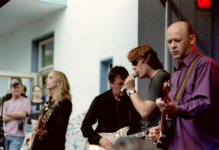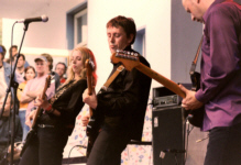 (Dancing Bear) www.dancingbear.hr and www.thebambimolesters.com The Bambi Molesters, that name! O.K., it is a name you will remember of course. As the band was playing at the Orange Blossom Festival (2003), I think it's a good idea to just bring their CD to the attention. These are Croatian musicians who mainly play surf and rock&roll, instrumentals indeed, in the style of Link Wray and Dick Dale, to just let a couple of big names roll. Now it's the particular thing, that a number of well known musicians like The Bambi Molesters verrry much and wanted to collaborate on their album, which was partly recorded in Seattle, by the way. Peter Buck (yes, the one of R.E.M.) for instance, adds guitar and fuzz bass. Scott McCaughey (recently working in The Minus Five) does a multi-instrumentalist thing. Eduardo "Speedo" Martinez then takes care of his Spanish spoken intro and tail-end of one song. "Ice & Pinewood Trees" sounds very interesting and quite mysterious with vocal of Chris Eckman (The Walkabouts) in his typical half spoken style, supplemented by a harmony of lady-bassplayer Lada Furlan. Chris plays acoustic guitar on "Last Ride", while Terry Lee Hale turns up to whistle along and to make cowboy sounds ("u-cha"), original find. The Croatians themselves provide a solid base with drums, bass and two guitars. The CD looks like a film soundtrack, after unfolding the inlay you instantly hold a small-sized poster with photographs of model Tamara Videc and the band, gangster-style. Maybe the tracks with vocals and other little jokes could have been divided a bit better over the album, now they're all in a row, or is that for a reason? Very exclusive. Very good. Every first question in every interview definitely is about that name! --- Written by Johanna J. Bodde. Dutch original of this review previously published on Real Roots Cafe, The Netherlands. ===== |