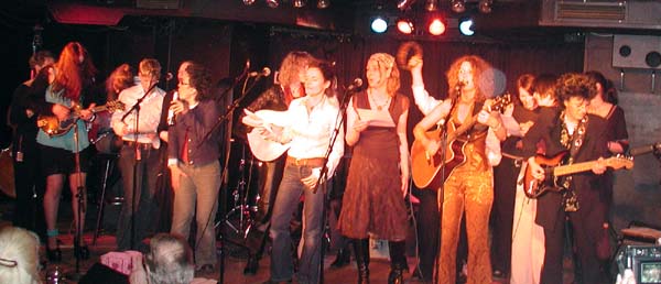 (Bluebird Cafe Berlin Records) www.sirens-of-berlin.de The Bluebird Cafe Berlin celebrated its 7th birthday in February 2004. For that occasion "Women In Concert" was organised twice. It was successful in all aspects, so a CD has been recorded: "Sirens Of Berlin", 17 tracks with unknown (only two names I've heard before) but talented ladies. They all live in Berlin, some have been born there, others come from elsewhere in Germany, or from France, Norway, Switzerland or America of course. Isn't that boring, a whole CD with female singer-songwriters who sing their own song? No, certainly not. One of the reasons is that high quality came in the first place, no wrong notes anywhere. Then there's the wide variety in styles: folk, worldmusic, jazz, country, soul, blues, pop, rock. Some ladies sing with (their own) acoustic guitar, others are backed by a band or one extra musician. The language is English most of the time, but there's also German, Norwegian and French. You can find more information about the ladies in the neat, well-made digipack with bios and pictures. Who are the best? That's hard to tell, there are only two not fitting artists inbetween. Mckinley Black (normally she uses only her first name) is the best known of the pack, her song "It's Never Too Late" is really beautiful. Kerstin Blodig performs a Norwegian traditional, on which Ian Melrose plays the flute, very special! Nadja Petrick sings her bluesy countrysong as a mix of Janis Joplin and Marianne Faithful. Chanson "Libellule" by Berangere Palix sounds experienced, Gay Frazier (with Stephan Gatti on dobro) gives away her Southern Californian roots, the arrangement of songs by Ladies First (mouthharp) and C.C. Adams (rainmaker and bodhran) attracts attention. Last track's CARO is a hit as well! This CD is a must for lovers of singer-songwriter music, but also for everyone who wants to try "something else". And why isn't there a Blue Bird Cafe in the other major European cities? --- Written by Johanna J. Bodde, translated by Yvonne Böhm. Dutch original of this review previously published on Real Roots Cafe, The Netherlands. ===== |