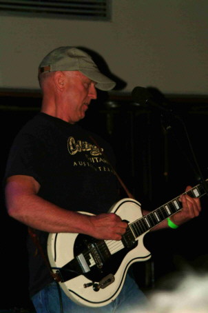 Tom RussellCopyright Peter Pricken TOM RUSSELL is having big fun, while replacing the McGarrigle sisters on the stage in the Big Room: "A cow on the tracks, how country can you get?" He has gathered a band of seasoned (as in grey-haired and/or balding too) veterans around him: his sidekick Andrew Hardin on (Telecaster)guitar, Gurf Morlix as the bassplayer, multi-instrumentalist Fats Kaplin on fiddle, pedal steel and keyboards, Rick Richards is the drummer. The stand with fish-snacks out in the hallway must do lots of business, as the air starts to smell -let's say a bit "fishy"- all around me. The musicians are ready and start off with an uptempo Mexican-flavored instrumental piece, Fats on accordion, that's some opener! An energetic "Gallo Del Sielo" follows seamlessly, Mr. Russell sure has charisma... He is actually one of the main attractions at the festival for me and I feel bad that my partner Nick, who passed away in 1997, can't be here anymore. We never saw Tom Russell live, but were always big fans, Nick loved to sing those wonderful story-songs and this was actually the first one we ever heard, in a taped Belgian radio-show a friend gave to us. Strange coincidence that Tom choses this one as the first song in the show! I try not to get too wrapped up in memories and concentrate on the show. Tom is already thinking about a new album, which will be called "Love And Fear", he sings one of the songs he wrote for it. Then he goes back to an old crowd-pleaser, "Blue Wing" and convinces the audience to sing along with "Muhammad Ali". Too bad he resorts sometimes to this "entertainer" mode, Chris Gaffney did that too a few years back and such talented singer-songwriters definitely don't need that, they're at a festival for music lovers, not in a Texan bar where booze needs to be sold in order to get tips! He makes it up to me immediately with his smart remark about the lawyer's song : "If you're Mexican you go to Death Row, if you're rich, you call Racehorse Haynes!" Great harmonica solo by Fats, who plays pedal steel on another new one, about Ash Wednesday. Two oldies, "Angel Of Lyon", where Andrew gets his own applause for his excellent solo and even "U.S. Steel", which comes from the first tape I bought of storyteller extra-ordinaire Tom Russell. We were out on the road and I was looking for that song about Gram Parsons, which is also on "Road To Bayamon". Darned, this still sounds the same tonight as on that recording eighteen years back! Fats Kaplin plays fiddle on "The Next Thing Smokin'", that Tom wrote with Katy Moffatt and I forgive him the corny remarks about signing CD's and female bodyparts, he sure brought a stellar band! I'm not too enthusiastic regarding "Woodrow", the song about Woody Guthrie. Sometimes I get the feeling that these very prolific singer-songwriters like Tom Russell and Chip Taylor don't think long enough about what they put on their next record, next year. Ripe and green ends up there, which makes it harder to dig for the hidden gems. "Grapevine" from the same recent album "Hotwalker" is wonderful though, I know it's about a bad stretch of road in California, I've lived there, but the way he announces it: "A trucker's hill, that runs into the San Joaquin Valley", wow! People behind me call him "a revelation" and we all have fun about his childhood story: As a 12-year old he heard Buck Owens and Bob Dylan on the transistor radio, he grabbed his ukelele, ran off and they caught him blocks away trying to buy some wine! "Everything's gone straight to hell, since Sinatra played Juarez" is another "sing-along" with accordion and then Tom invites Eliza Gilkyson on stage for a duet, "The Dutchman". Sounds beautiful, too bad they chose that cheesy old song, every unknown musician in California wants to sing that for you as soon as they hear you're Dutch! And they'll ask how to pronounce "Zuiderzee" for sure. Tom ends the show after one-and-a-half hours with two songs he wrote with Dave Alvin, played two times faster than on their albums, with slightly changed lyrics, but very impressive: "Out In California", which is the favorite song of Mart Smeets: "I'm sitting here and drinking in the last bar on Earth", followed by "Haley's Comet", which has a busstation in it and therefore is definitely one of my all-time favorites! Fantastic show, I wish Nick could have enjoyed it with me... ==========