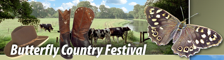 music sounds everywhere and I see a lot of cowboyhats and other attire,