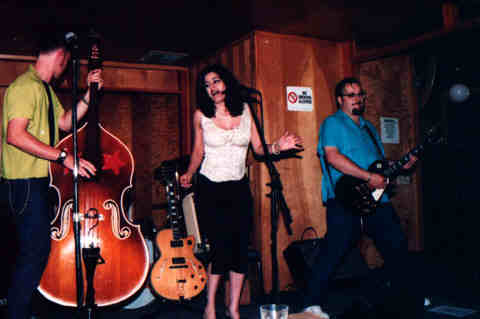 Cattie Ness & the Revenge has been playing traditional rockabilly for the last four years. They are Rebecca Caraveo on lead vocals and rhythm guitar, Kevin Thomason on upright bass, Rich McCulley on lead guitar and Kym Kilgore on drums. The music is fun and up tempo; the lyrics tongue in cheek from a cattie woman's point of view "I was standing by the door when I saw ya stagger up to the gate. Well I grabbed a rolling pin but it's just about a second too... "Mean"--you never stop talking, it's time your start walking, just shut your mouTh and please go .... "99 Bottles" --the ever popular Maddox Bros. and Rose cover "Wild Wild Young Men" ... wild, wild young men scandalize my name... and the not-too-romantic love song "Baby Maybe Then I'll Love You" You're not the first, your not the last, if you want to love me, start working fast, baby, ... For over a year the band hosted shows in the Americana genre at their local hangout, Tokyo Garden, as well as other venues in Fresno. These shows have ranged from Cowpunk to Western Swing to Psychobilly and boast the likes of Big Sandy and His Fly-Rite Boys, Deadbolt and Deke Dickerson. As for recording, the band just finished up 5 songs as a start to their upcoming self-produced CD "Fresno Rockabilly" planned for a spring release. Some time soon they will be going into the studio with Deke Dickerson for their contribution to the Purist Records compilation "Good Rockin' Tonight", also due out in spring of 2000.