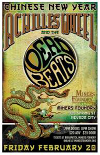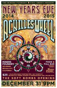 Achilles Wheel is a high energy, highly danceable rock'n'roll, roots and world music band from Northern California, featuring award winning songwriting, played on numerous stringed instruments and the rhythmic earthquake of two full drum sets. In the wake of their breakout performance at the 2012 Kate Wolf Music Festival, the band has been burning up stages all across California, including the Strawberry Music Festival, the legendary Sweetwater Music Hall and a repeat performance at the Kate Wolf Festival in 2013 that is still being talked about. Achilles Wheel was formed roughly four years ago and we released our first CD, ‘13 Hours’, shortly after that. ‘13 Hours’ was recorded live at the historic Nevada Theater in Nevada City, California with the echoes of Mark Twain and Lola Montez bouncing around in the rafters. There we put together a raw and live feeling CD that reflected well the celebratory nature of our music and since then we’ve been lucky enough to have played at some of the biggest music festivals in California. Which brings us to today… The new CD ‘Stones To Sand’ is just being released and fully embodies the exciting musical growth Achilles Wheel is experiencing. Two sold out shows for the release party at the Crazy Horse Saloon in Nevada City on a balmy Summer Solstice weekend didn’t stop the large crowd of people, who couldn’t get in, from dancing in the street, since the doors and windows to the club were all open. This enthusiasm for Achilles Wheel ultimately earned them a spot at the 2014 California Worldfest through a ‘fan choice’ vote. And the Strawberry Music Festival also gave the band a call asking them to join the party last September when that festival re-emerged in its temporary new home at the Grass Valley Fairgrounds. The fiery epicenter of Achilles Wheel’s sound is Jonny 'Mojo' Flores on lead guitar and vocals, surrounded by Paul Kamm and Shelby Snow on rhythm, bass and vocals, and Gary Campus and Mark McCartney on drums and vocals. The seemingly disparate backgrounds of the band’s five members is what creates a unique fusion of styles and musical influences. Award winning singer/songwriter, guitarist Paul Kamm, comes from the well known modern folk duo Paul Kamm and Eleanore MacDonald, while lead guitarist and songwriter Jonny 'Mojo' Flores performed for years with the popular Sacramento Blues Review. Mark McCartney, on drums, has had a colorful career playing with many bands including Shanna Morrison, while Achilles Wheel's other drummer, Gary Campus, can point to working with internationally renowned Scottish Fiddler Alasdair Fraser as one of his many musical lives. Shelby Snow on bass guitar, he studied at the College of Marin Music Department, has worked with some of the finest California bands and has shared the stage with the likes of Carlos Santana, John Cippolina and Steve Kimock, playing with Grateful Dead drummer Bill Kreutzmann and the late John 'Marmaduke' Dawson of the New Riders of the Purple Sage. All of this pours out of an Achilles Wheel show like fresh water on a hot day. As original songs go, Achilles Wheel’s are some of the most accessible around and will stay with you long after the excitement of the show is over. These writers have been acknowledged by many of the biggest music festivals in the country including Kerrville, Telluride and Rocky Mountain Folk. Two of their songs, "Got A Tattoo" and "Let The Dream Begin" have been recognized in the ‘Race to TRI’ song contest, which many on the West Coast will recognize as a premier audio-video production studio run by Bob Weir. So if you love to dance and celebrate life, come see an Achilles Wheel show and make a joyful noise. They’ll be waiting. Peace..... ----- ![]() Achilles Wheel's SHOWS: (by Tyler Blue - Crazy Horse Blog): We’ve never needed a special occasion for people to get excited about seeing Achilles Wheel at the Crazy Horse. On June 20 and 21st, 2014 we had two occasions to up the ante on the celebration - Summer Solstice and the release of their new album, 'Stones To Sand'. It was also the first time they had played two consecutive nights here. The buzz had been building for quite awhile. This was a big deal for fans and band alike. Following a six month hiatus, the Wheel and the Horse were ready to make magic again. They played here so frequently during 2013, we anointed them our house band. We were starting to miss them. Going through the recording process for the album clearly had a transformative impact. Of course they still hang their hats on improvisational prowess, but the overall presentation carried more precision than ever before. Certain people have lazily considered Achilles Wheel a Grateful Dead cover band. No doubt they are able to represent that coveted songbook better than most, but that is only part of their identity. With 'Stones To Sand', they have shed their skin and emerged more confident with original material. Throughout the two nights, they played most of the songs on the album, fitting them into the repertoire with natural ease. Like most bands with such proclivity for jamming, it was in the live atmosphere that they really shone. Such is the inevitability when feeding off a crowd like the one at the Crazy Horse. Given the venue, it was especially apropos to hear “Nobody Drinks If The Bottle’s Dry”. With this album, rhythm guitarist / vocalist Paul Kamm further cements his reputation as a songwriting sage. The place was full each night but always comfortable. The energy was different from Friday to Saturday in subtle yet notable ways. Friday seemed to have more of a psychedelic edge. A few of their jams had a way of picking up velocity as if generated from a source beyond the earthly plane. Saturday was a super-charged rocker which saw the band playing at an electrifying clip. Each night the album’s title track was an improvisational highlight, even more so than usual. During Friday’s version Jonny 'Moj