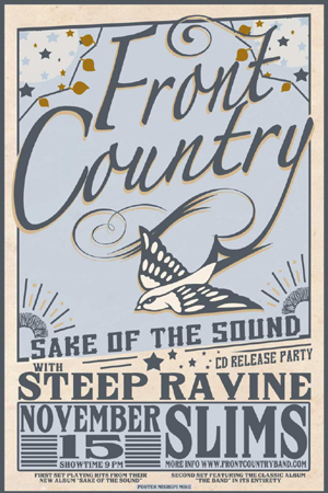 spiritual guidance for a crew of six.Since then they have continued to expand their repertoire and push the boundaries of bluegrass on the national scene. In 2012 they won the Rockygrass band competition in Colorado and followed up in 2013 with a win at Telluride becoming the third band in history to win both contests. Also in 2013 lead singer Melody Walker won the Chris Austin Songwriting competition at Merlefest. Along with guitarist and band mate Jacob Groopman, she released the magnificent duo album 'We Made It Home' in 2013. The years 2013 and 2014 has seen Front Country break onto the national scene with festival performances at Rockygrass, Old Settlers Music Festival, Wintergrass, Grass Valley Bluegrass Festival, Telluride, Summergrass, IBMA's Wide Open Bluegrass Festival and many others along with headlining performances at the Great American Music Hall in San Francisco. ---