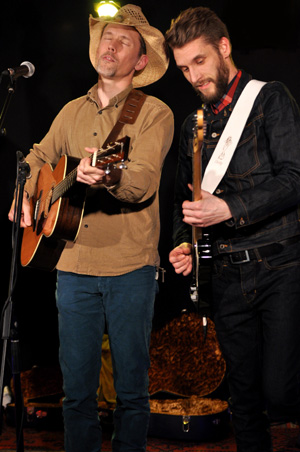 The album 'Mother Tongue': 1. "Love Is The Law": Atmospheric guitars at the beginning, Jonathan playing acoustic, M.C. and Nikolaj electric. The relaxed ballad keeps the focus on the lyrics. "Every light shines from a single flame". Philosophical poetry indeed. Beautiful harmonies on that little bridge halfway. 2. "Natural Supernatural": Tempo picks up here. M.C.'s highstrung guitar and banjo enter the scene. Funny folkrock with quirky rhyming, like: "See the arch in the archery / Hear the psalm in the psaltery". 3. "Mother Tongue": The title track is co-written by Jonathan and M.C. The whole band hums along. M.C. sings lead vocals and I just love his sensitive voice: "Every promise every lie / Every whisper every cry". Jonathan plays electric to great effect. Gorgeous and impressive song, more than worth being the title track. 4. "Malchik": Jonathan wrote this song with Amy Speace and sings it himself, accompanied by his own acoustic guitar and Nikolaj's upright bass. 5. "On The Edge": What a wonderful melody! Builds up in a great way and Jonathan sings better than I've ever heard him do. This makes me think of Leonard Cohen's "Suzanne", by the way. "She just turned around to wave / And the agent at the gate said 'Your exodus has been delayed'." Another highlight. 6. "I Thought I'd Seen It All": M.C. Hansen sings lead vocals again on another co-written song. "I watched Venus from the window seat / On a cold winter flight." Oh yes, this is also a favorite! 7. "Working Man Blues #3": I like the religious overtones: "I will lay down my hammer / Tonight when the lights are low / And leave the only church / Where I ever knelt to pray". They even sing 'Hallelujah' as a chorus. I like that set-up, with M.C. singing and Jonathan on the electric guitar. 8. "There's A Storm Coming": Fitting the title - a convincing rock song! A little bit of Creedence Clearwater Revival. Please, play that guitar riff again? 9. "Sun On The Water": Back to a blues influenced ballad, written and sung by Jonathan, M.C. effortlessly creating a airy soundscape on his electric guitar. 10. "Harvest Time": Shakers and two acoustic guitars. It is actually possible to paint a picture by guitar. These guys find the best fitting sound to the lyrics all the time. "The burning meadow / calls our names". Brotherly harmony singing, although they're no brothers. 11. "I'm Going To Change The World": Urgent uptempo singing and playing, perfect for the subject. The world needs changing, fast! Cool sarcastic wink: "Here, take the money / I'll get more of that. It's easier to find / Than a lasting peace of mind." 12. "Sins Of Your Father": A M.C. Hansen original. Impressive folk gospel singing. 13. "I Don't Understand Myself": The album closes off with a Jonathan Byrd ballad, accompanying himself on acoustic guitar. -----