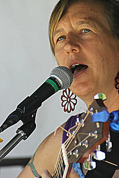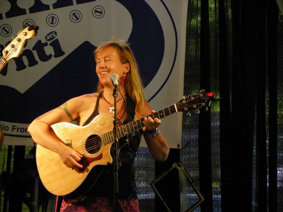 On Earth Day of 2014 (April 22nd) she has released her 4th album 'Some 1 Like U' to the American radio. It features eight original tracks and covers of songs by Neil Young, Joni Mitchell, Peter Meyer and Death Cab for Cutie. Kathy's album was produced by Tom Prasada-Rao and we can also enjoy performances by Andy Goessling (Railroad Earth), Buck Dilly and Cary Cooper. Kathy Moser has been in love with music and Planet Earth as long as she can remember. Her introduction to folk happened at Girl Scout camp, which led her to the coffeehouse scene. Distressed by her inability to play guitar while sitting on that four-legged stool found on every folk stage, she wandered over for a record or two into something looking a bit more like rock. But realizing she missed her tribe, she wandered back to her acoustic roots with a guitar strap and never looked back. An award-winning songwriter, engaging performer, teacher, social artist and passionate environmentalist, Kathy is dedicated to bringing positive change to the world through music both on and off stage. She performs and tours nationally, having appeared at well known folk venues, as well as colleges, churches, coffeehouses, prisons, and benefits too numerous to mention! Known for her poetic lyrics, driving guitar style and goofy stage presence, her songs confront a variety of topics ranging from world peace to lawn mowers, dysfunctional families to shopping malls, drug addiction to the wisdom of trading in your car for a horse. Audiences leave her shows entertained and uplifted, thoughtful and motivated. Out of respect for her favorite planet, half of the 'Some 1 Like U' pressing is CD-free. Fans will be able to purchase a copy that contains all the stuff they love about albums -including lyrics, photos and stories- with a download card, instead of a CD. The number one environmental impact of the music business is the audience traveling to the shows. To date, through a combination of education and bribery, Kathy's audiences have carpooled more than 1,200 miles to her concerts. This win-win solution benefits fans, festivals, venues and... the planet. Working with young people is one of Kathy’s passions and she gives workshops, artist residencies and concerts in a variety of educational and institutional settings. Her work encourages young people to find a place to make a positive contribution to their communities. Every time I listen to this album, I hear more stunning details, I'm loving