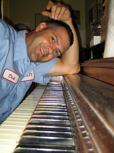 For 'Gasoline', controlling compositional factors include alphabetical and numeric codes that translate names of people and companies associated with oil and the automotive industry into chords and tempos. Individual contributors' automotive and gasoline-related anecdotes provided lyrics for the recording's two dozen songs performed in English, Spanish and German. Song titles include "Wankel" (for the rotary engine), "Henry Ford," "Rudolf Diesel," "Gasoline Dreams," "Boneshaker" and "Poseyville." Local collaborators who either sing or speak on the CD include painter and cartoonist Matt Billman, artist and assistant gallery director Erika Myers-Bromwell, poet and writing teacher Matthew Graham and public radio host Kenton McDonald. Eric Braysmith, a muralist, photographer and film teacher, helped code time signatures. If you want a copy without taking your chances at the gas pump, contact Doyle arranging to cover postage. "I'll send out a disc for a limited time as long as they promise to pass it on," says Doyle Dean. He takes the project seriously, but with a sense of whimsy, as reflected in his e-mail signature quote: "I set out to re-define popular music but discovered a new way to create extremely unpopular music instead." ---