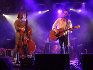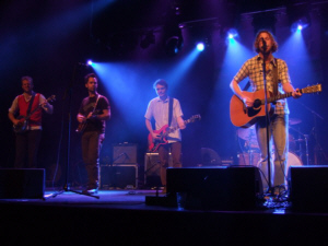 Of Heaven VII Festival Patronaat, Haarlem November 26, 2006 Written by Johanna J. Bodde Photos by Tamara Number 10 pulls out of the busstation but stops abruptly when the driver spots a man walking his chihuahua. Apparently a friend, as the driver opens his window and they chat for a few minutes. Then the bus continues his ride. This is exactly the right attitude for today, relaxed, the chihuahua way! The road up to Roots Of Heaven was somewhat rocky this year. Last week I had surgery on my jaw, good thing is that I don't have to walk circles at night -because of the pain- anymore, bad thing is that the procedure obviously took a bite out of my physical condition, antibiotics are a drag... Then, yesterday, I got a mail regarding my usual friendly automobile for the ride back into Rotterdam after the festival. The vehicle was fully booked already, with my place taken by... another writer for a music website! This means I have to leave awfully early and take the train, normally I would decide not to go but I made appointments with several friends and musicbizz people already and I don't want to let them down. So I'm going to take it easy today and I don't even let grumpy NS-personnel (Dutch Railways) spoil my good mood. Jeez, they're worse than on Monday mornings and there are more problems too... Finally, the third train brings me into Haarlem and it pleases me that the city is filled with happy people, taking advantage of this quite sunny Shopping Sunday. Around three o'clock the music lovers gather in front of the Patronaat, discussing the latest personal and musical news, even the results of the soccer games are phoned in. The guest list is so generously long, that they open a separate door for the press musquitos. (Thanks to Warry for putting me on the list and to Theo for forwarding the initial mail!) While waiting for the event to start, the line-up is being discussed. A bit weak, most of us agree. Seven out of ten acts have been on other Dutch festivals before! Why chew on acts that are chewed on extensively by others? While an exciting new artist like Douglas Greer (number one on the EuroAmericanaChart, number two the following month!) is in The Netherlands this weekend? And while a wonderful singer like Linda McLean (check out "Amsterdam Canals" on her new album "No Language"!) is even hanging out at the festival? They won't weigh heavy on the budget. Or if the bookers want somebody with a solid fanbase, why not ask Sid Griffin? He lives in London and doesn't have high travel costs, maybe he can even gather his Long Ryders once more! Hey, why not book reunited True West, for an exclusive European concert? Hopes and dreams, I better shut up before the booker hears me and comes out to whack me over the head... --- ![]() EL PINO & THE VOLUNTEERS, a six piece homegrown Americana band, opens in the Big Room. Didn't they win an Essent Award? Thought I read that somewhere, but it wasn't mentioned in the promotional material. The first song is sturdy rootsrock, then they perform some "Sunday afternoon songs", playing solid and singing well-rehearsed Byrds-style harmonies. A sixth musician is introduced as the Canadian Gary, he was supposed to replace their multi-instrumentalist while he was hospitalized, but the surgery couldn't take place due to a fire in the hospital. "Now we have two of these guys walking around on stage...", the singer sighs. I assume they write their own material and they know how to compose a catchy song, I like the use of instruments like lapsteel, accordion, banjo and mandoline. We don't have to be ashamed of our own Dutch bands. Next year Taneytown, booker? --- ![]() Promo Shot A good crowd showing up and the infamous Small Room at a festival usually result in a claustrophobic experience. But I'm too curious to hear DAMIEN JURADO to let this get in my way. Damien introduces himself, he's from Seattle, a stocky, dark-haired young man sitting down with an acoustic guitar, a pretty lady with a cello and lots of shakers on his right and a guy playing electric guitar on his left. I don't know his album, so I let the music surprise me. The first ballad, somewhat lo-fi folkrock, a bit like Tom Mank & Sera Jane Smolen play them. That impression changes quickly, when in the second song the guitarist takes a seat behind the drumkit and Damien showcases a wonderful voice that really builds up a song. The lyrics are definitely dark and probably make better sense late at night on CD than in an overcrowded, hot, sticky and smoky festivalroom. Elliott Smith comes to mind, but certainly also Willard Grant Conspiracy. I luv this music! It only takes a melodic song with hypnotic snaredrum and shakers to get everybody hooked. The celloplayer asks Damien genuinely concerned how he's doing and explains he's on medication. Damien takes over the story and tells that the normal bottle keeps him from jumping out of windows, while the other bottle is for his flight anxiety. He took the wrong pill... "But that one still keeps me away from windows!" Coincidence or not, I hear the line "Can't get the drugs to work" in lyrics about "winter" and "my dead body". "I hope the mourners will bring plastic flowers..." Wow, I have to check out this guy's CD! "What Are The Chances" is a call & respond song, but here the woman just repeats what the man says. So the celloplayer sings into a sort of device that creates this "old radio" sound and they make it sound like something very intriguing. By this time the room is so packed that nobody can breathe properly anymore, a girl in front of me almost faints and is helped by her friends to sit on the floor. In the meantime Damien feels better and is joking about the shitloads of change they bring back from a tour in Europe, he even throws some coins around! Typical American habit: paying with a bill and pocketing the coins, maybe until they see a homeless person begging for "spare change". The songs become more & more interesting, turning into soundscapes