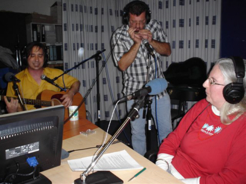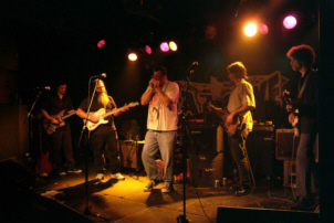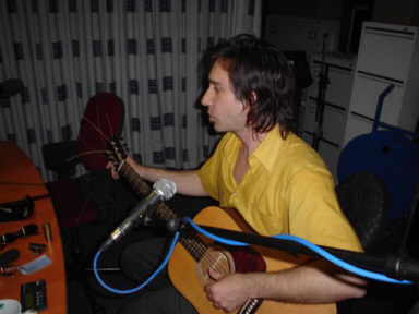 SOUTH FILTHY Vera, Groningen June 9th, 2005 Session RICE MOOREHEAD aka Amberjack Rice Alt. Country Cooking, Radio Winschoten June 9th, 2005 Written by Johanna J. Bodde Session Photos by Bob Honhoff South Filthy Photos by Peter Pricken These days almost all of the exciting things in life start off with a simple E-mail. Rice Moorehead sent one to Theo and me about his upcoming tour as a bassplayer for South Filthy. He knew us from the radio-show Alt. Country Cooking, where we frequently played the albums he made as singer-songwriter/guitarist Amberjack Rice. The first date of that tour caught my eye immediately: on a Thursday evening at the Vera in Groningen, only half an hour's drive away from Winschoten on the night we're on the air! We decided to invite Rice for an interview and a session... He was excited about the idea and then a whole lot of E-mails were sent back and forth, between Rice, me and Robert, the very helpful bookings-agent/tour-manager. We figured out the timing for the visit to our studio, the transportation, our technical possibilities and most important of all: we found an acoustic guitar for Rice! He plays the electric bassguitar in South Filthy, so that's the only instrument he has with him on this tour. He's lefthanded, like millions of people on this planet, so you would say it's not so hard to find a lefthanded guitar. Wrong! Finally Bob, a fellow DJ and also musician/guitar-collector (he loves the rumor going around that he owns 250 guitars!) helped us out with a beautiful Martin-guitar and put on the strings "the other way"! Rice mailed that he was very happy with our solution: "A righty strung for lefty will work great." In the meantime I tried to find some information about the band South Filthy. Wow, these guys all have quite a musical history! It was like the old days were back, when I used to come home from doing my show for a "pirate" (illegal radio-station) and listened to the late night programming of the VPRO with all these rare & obscure recordings. It's going to be, indeed, exciting! ----- ![]()