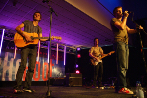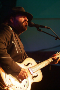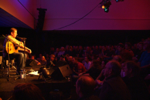 | Take Root Festival De Smelt Assen, NL Saturday October 7, 2006 ----- It's this Take Root time of the year! I was at the 2003 edition, where Theo Oldenburg (Alt.Country Cooking) and I ran around for great interviews with Grey DeLisle, Kelly Pardekooper and way past midnight Teddy Morgan. My story ended up in Belgium then, on Benny Metten's wonderful site CtrlAltCountry. My yearly request was granted again now and I'm being put on the guestlist (Thanks, Johan!!) in exchange for a story. That means taking the bus to Assen. Although bus service is lousy in these parts, I have to admit that I always enjoy this hour long scenic ride! A flock of beautiful white and beige geese has picked the canal, the road and the small strip of grass inbetween to rest their wings during their migration. Traffic in both lanes is blocked, everybody is laughing as these birds are like watchdogs, they won't move an inch. The leading goose stretches his neck and yells even louder! Until an old man on a bicycle passes by and quietly coaches them off the road... When I step off the bus downtown Assen, my friends Yvonne & Paul -who drove all the way from Haarlem- are just parking their car on the opposite side of the street. So I don't even have to search for them and we have plenty of time for coffee & conversation. The restaurant of Hotel De Jonge is a buzzing hot spot: label bosses, DJ's and music critics walk by and say hello. And we see already some artists of course, Colin Linden looks just like his album cover, so he's easy to recognize and later Krista Detor and her husband leave for De Smelt. That's what we should do too, after a short walk along the marketstalls. De Smelt still has that funny fake Mexican look, even the two (real!) birds are still there. The Main Room has one big stage now and the small Acoustic Room got lots of chairs. After some more short conversations with people from the music bizz, we decide to stay there for BORIS MCCUTCHEON & THE SALTLICKS. --- ![]() Boris is a favorite, both his albums are in my collection and I saw him already during his very first tour, playing an impressive concert at the Q-Bus in Leiden. This is already his fourth tour and he's ready to squeeze everything possible out of his 45 minutes.If Master Of Ceremonies Jan Donkers will let him... This retired DJ has probably the best taste in music imaginable, but he breaks every rule in the DJ book: he sniffs loudly into the microphone, can't find his words or notes, bumbles his sentences but he's enthusiastic, so we forgive him... for now. Boris starts out kind of quietly, while rain and thunder whip the glass dome of the Acoustic Room. He has a new Saltlick with him: Susan who plays bass and sings harmony, he calls her affectionately Cactus Girl. Jeff Berlin still plays drums and Brett Davis banjo, electric guitar and lapsteel. He enters more rocking territory with "Green Wish" and ventures into soul with "Santa Rosa Plums" and "Beautiful Prison" from his first album. "Small Town Blues" is a new song, he looks up to the dome: "Is that rain? I thought they were skateboarding up there! Are we gonna drown?" Susan shows she can play a mean acoustic bass too and she's definitely a good singing partner for Boris. Music lovers behind me call the show "exciting", the songs are all so different, they even come up with "a musical ark of Noah"! And that's before the soundscape with lapsteel, another acoustic guitar and a loop. The last song signal always comes too soon. "Shit, these are tough decisions!", then Boris chooses a sturdy "Caves Of Burgundy" to close off. --- ![]() As I decided to let the festival surprise me, I didn't even look up information about the artists. ODD from Norway is next in the Acoustic Room. Three young men try to get ready on stage, I catch a great remark about the sound: "That's the difference between shaving and cutting your head off." Now I definitely want to hear these guys! Jan Donkers convinces us that Odd is a normal first name in Norway... Well, Odd is the singer and he has two guitarists with him, one acoustic and one electric. He is probably in his early 30s, wearing jeans and a kaki t-shirt with gold print. A guy with a "high caressability factor" as my friend and I joke in Dutch and it's so great to be old enough to say this, without anybody looking funny at us! But we're here for the music and Odd can sing up a storm, he has a very impressive voice that he uses to the fullest, range, falsetto and all. The lyrics are somewhat dark: "I'm lost in the sound of human traffic, it's all around" comes from the first song. He apparently promotes his new album "Not All Birds Fly With Ease", intriguing title. "Trust" is very intense and in "Agoraphobic" he goes from quiet to screaming, while "Song For Daddy" is nice and melodic. Hard to stick a label on this music, singer-songwriter is a genre these days too, isn't it? Does he sound like anybody I know? Joseph Parsons comes to mind, for the intensity and a bit for the vocal. After "Never Came" Odd closes off with a rhythmic "Madness", which has a sudden end. He takes a bow, blows a kiss and disappears. --- ![]() While bearded Canadian COLIN LINDEN turns the soundcheck of his three guitars into a funny little show, a few people -including me- decide it's picknick time. Why give up a good seat and risk our lives in the logistic nightmare of going back into the Main Room when a raisinroll and a bottle of orangejuice taste just as well? Colin, in a black suit with embroidered jacket and a black hat, is just wonderful ("It's such a thrill to be here!"), we even come to the statement that all Canadians are totally nice people! Jan announces that the "meccanobox" is installed -meaning the effect pedals- so the concert is about to start. This is acoustic countryblues, a music style that I came to love over the past years. Colin is obviously plugging his new album "Easin' Back To Tennessee", but does that in such a sweet, funny way that I would immediately